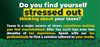 We Work For You, Not The IRS! ® It's not a tagline, it's a PROMISE. We’re BIG enough to meet all your needs, yet small enough to know your name. At Elite Tax Services, LLC we pride ourselves on being responsive to the needs of our clients and on providing innovative … learn more